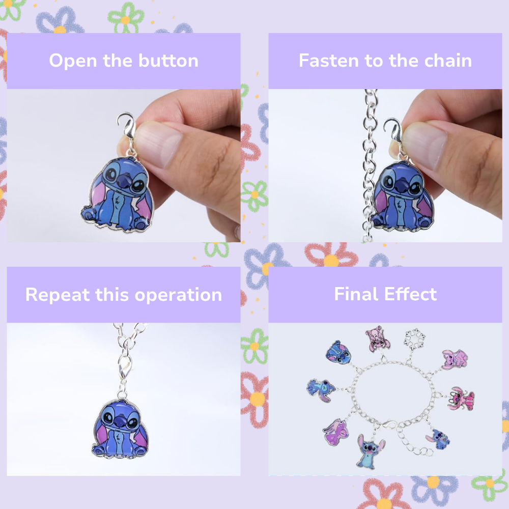 You’ll find 2 bracelets, 1 necklace, and a variety of cute accessories to create your own jewelry.